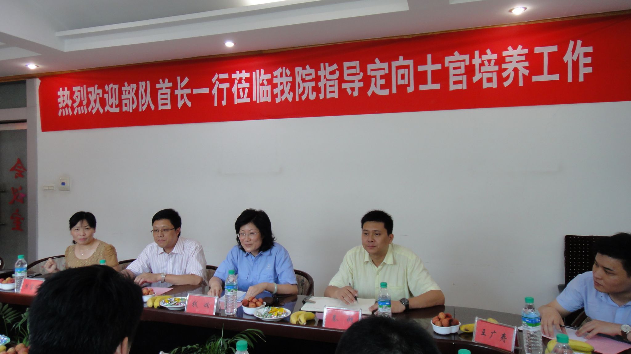 6月15日下午,海军司令部军务部兵源处副处长石慧超中校、军训部组织计划处参谋刘荣华中校、北海舰队司令部军务处兵源办尚祥胜少校、海军航空工程学院青岛分院蔡增杰大校一行6人,在江西省军区军动处副处长汤王东中校、海军南昌航空大学选培办主任罗红明上校的陪同下,到江西航空职业技术学院调研,就2012年学院为海军定向培养50名飞机制造技术专业应届高考毕业生的招生、教学、实习实训、日常管理等方面进行业务对接座谈会。