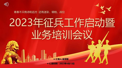 为加强征兵政策宣传,切实做好我校2023年秋季大学生应征入伍工作,提升大学生保家卫国的责任担当。4月13日下午,我校武装部在经开校区3-105教室召开2023年秋季征兵工作启动暨业务培训会议。会议由金亚丽老师主持,各二级学院负责人和全体辅导员参加会议。