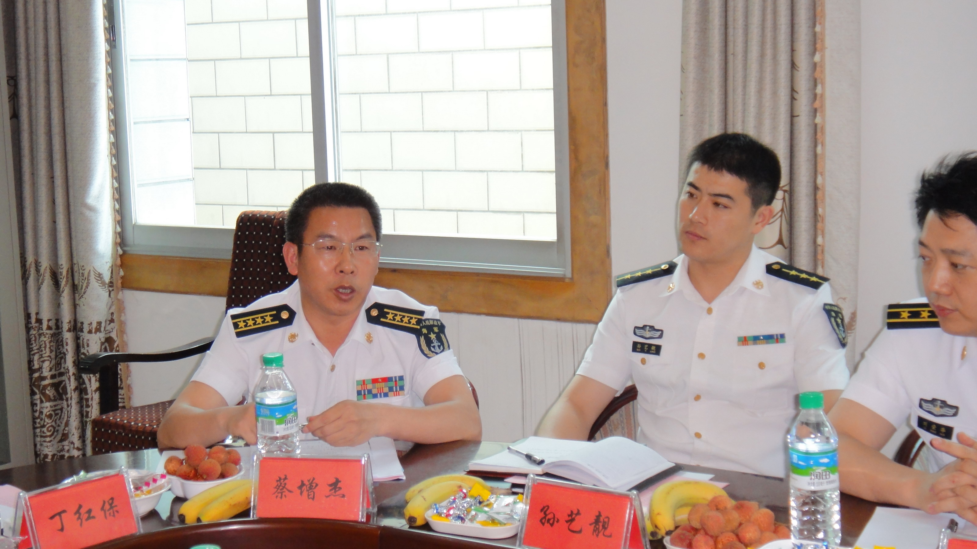 6月15日下午,海军司令部军务部兵源处副处长石慧超中校、军训部组织计划处参谋刘荣华中校、北海舰队司令部军务处兵源办尚祥胜少校、海军航空工程学院青岛分院蔡增杰大校一行6人,在江西省军区军动处副处长汤王东中校、海军南昌航空大学选培办主任罗红明上校的陪同下,到江西航空职业技术学院调研,就2012年学院为海军定向培养50名飞机制造技术专业应届高考毕业生的招生、教学、实习实训、日常管理等方面进行业务对接座谈会。