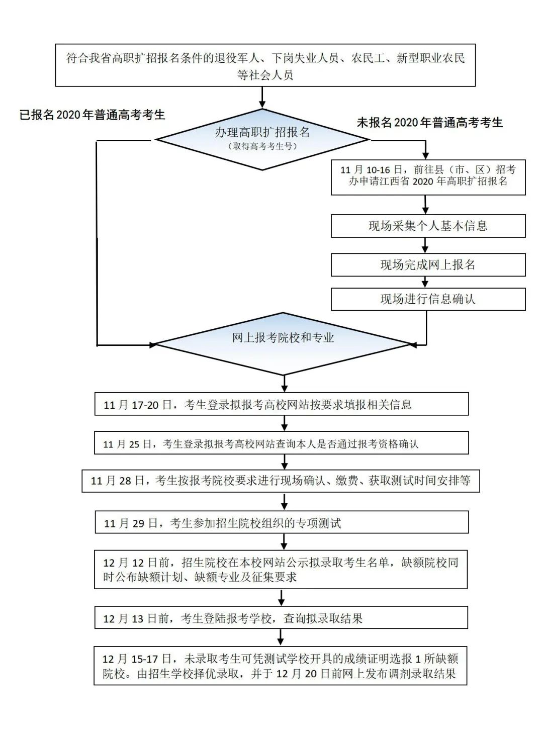 江西省2020年高职扩招社会人员专项招生报名时间为2020年11月10日上午9:00—16日下午17:00,逾期不补报。