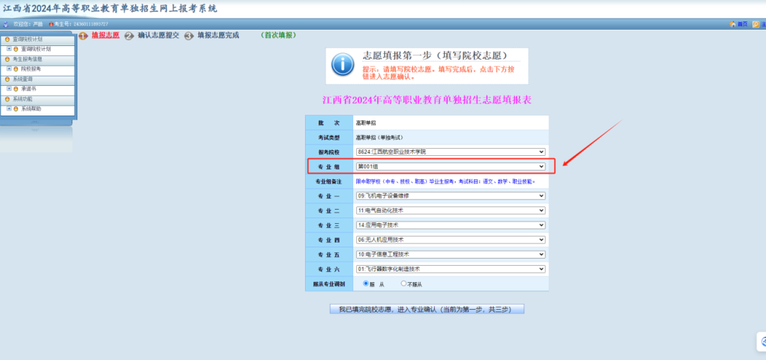 05选择报考专业组:(1)001组:中职学生毕业生(中专、技校、职高)(2)002组:普通高中毕业生(含同等学力)