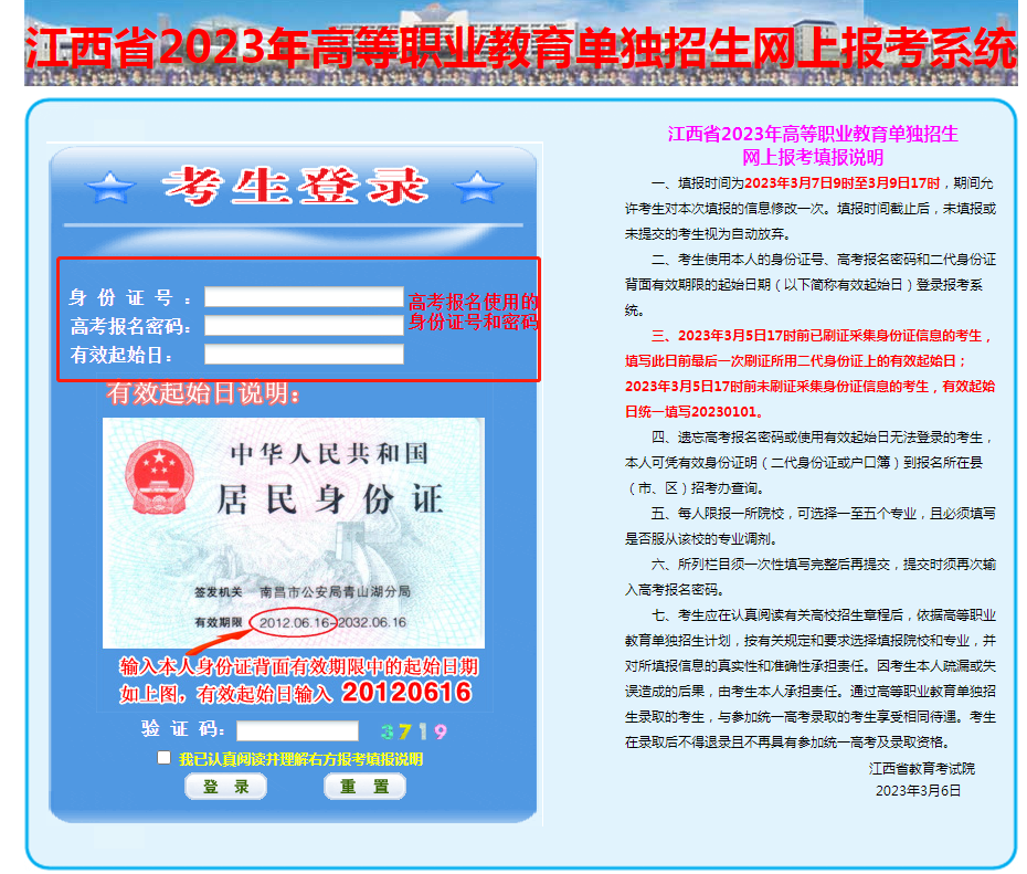 登录账号 进入后输入身份证号、高考报名密码、身份证上面的有效起始日进行登录。