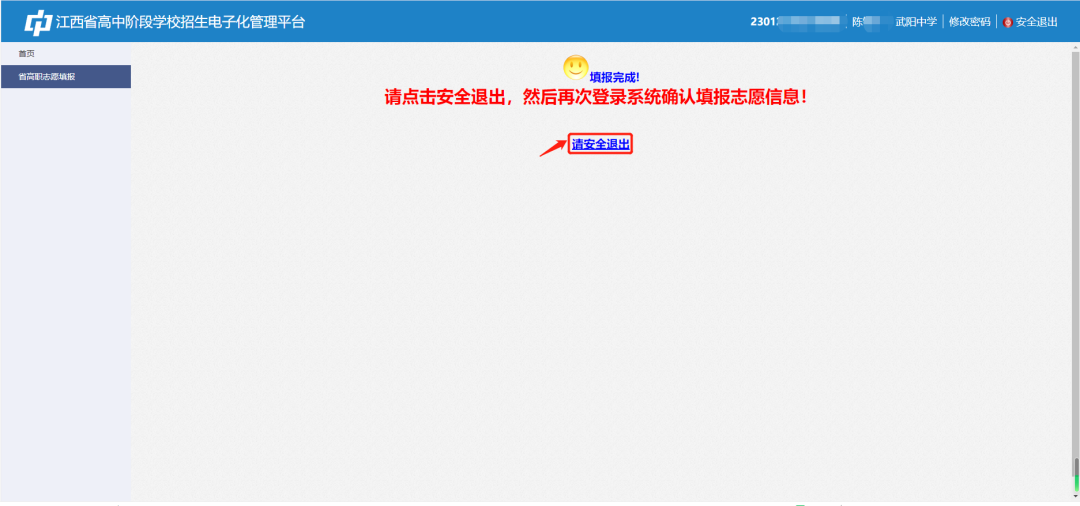 第九步:志愿填报保存之后,请退出登录,然后再次登录网站进行确认填报成功。