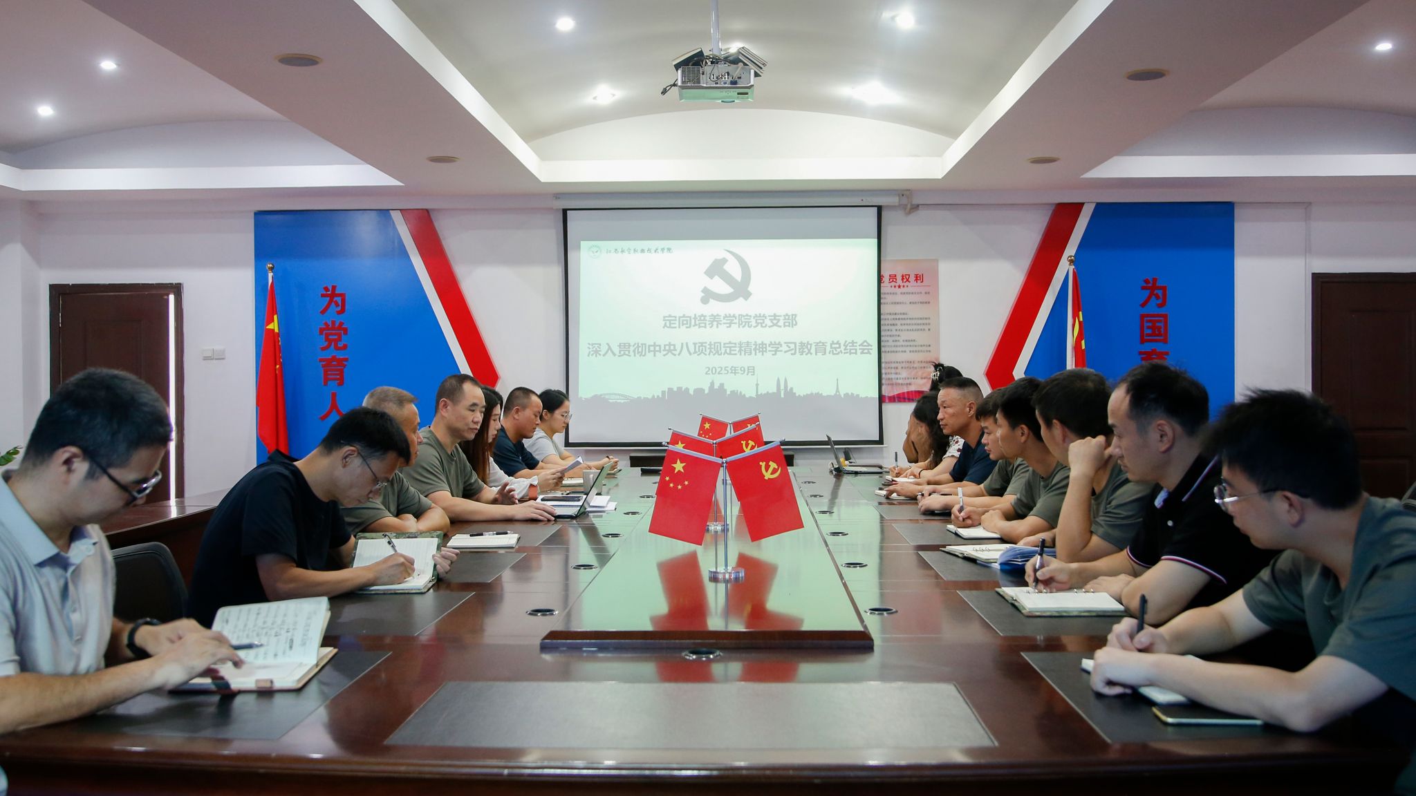 为加强学院党员的思想建设,明确党支部工作重心和方向。2025年9月22日,定向培养学院“军号”党支部于昌南校区三楼会议室召开深入贯彻中央八项规定精神学习教育总结会议暨9月主题党日活动。党支部书记毛建勇主持,全体党员参加。