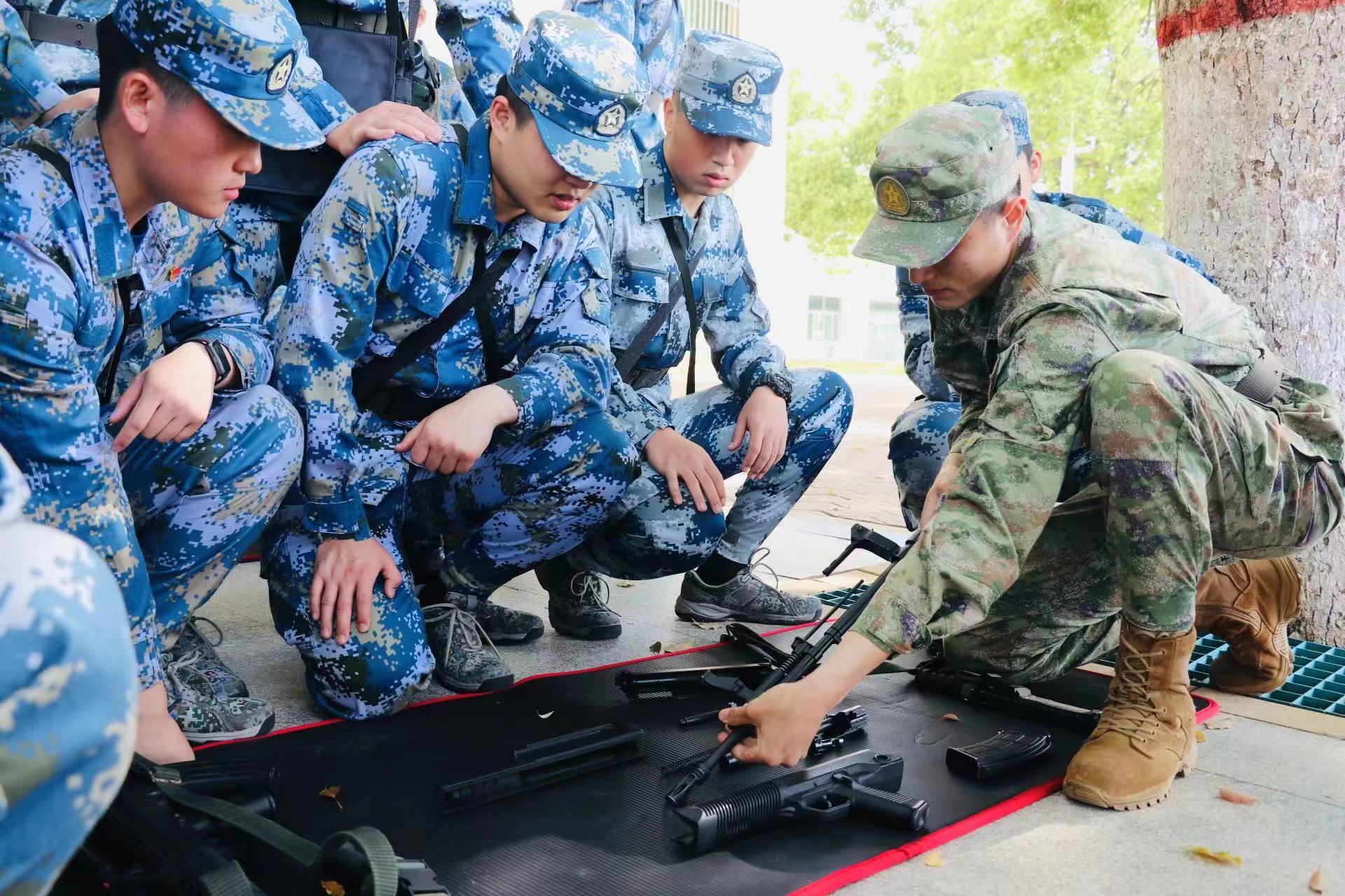 出发前,支部书记何凯作动员讲话,他表示:“希望同学们能提高认识,重视此次交流学习,能够学有所得、学有所获、学有所长”。抵达目的地后,在学员队干部的热情带领下,我院师生观摩了军校学员们展示的队列训练、刺杀操、匕首操、武器分解结合等多项训练科目。接着,军校优秀学员为在场定向军士生骨干讲解了枪械构造及性能常识,并对验枪、据枪、瞄准、击发等多课目进行了现场教学。最后,军士生骨干们参观了学员队的内务设置,四四方方豆腐块、平整无暇的床铺、一尘不染的桌面、摆放整齐的洗漱用品,无不体现着军校学员严格过硬的军人作风。
