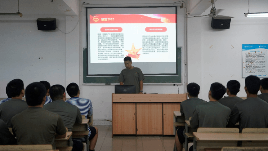 活动伊始,嘹亮的《光荣啊,中国共青团》歌声拉开序幕,团支书们以饱满热情唱响青春旋律。随后的核心精神领学环节,重点传达了习近平总书记关于伟大抗战精神的重要论述,深入解读其蕴含的爱国情怀与英雄气概,并结合《赣鄱亮剑 —— 江西人民抗战史迹展》及万家岭大捷、上高会战等江西抗战史实,让团支书们感受本土红色历史的厚重。同时,还讲解了党的二十届三中全会精神、新时代共青团工作目标及团纪与团员权利义务。反诈学习环节聚焦学生群体,解析刷单返利、退款理赔等典型诈骗套路,传授 “未知链接不点击、陌生来电不轻信” 等 “三不一多” 防范技巧。交流讨论中,团支书们结合军事训练与专业学习,分享如何传承抗战精神、对接国防需求,将学习成果转化为实际行动。
