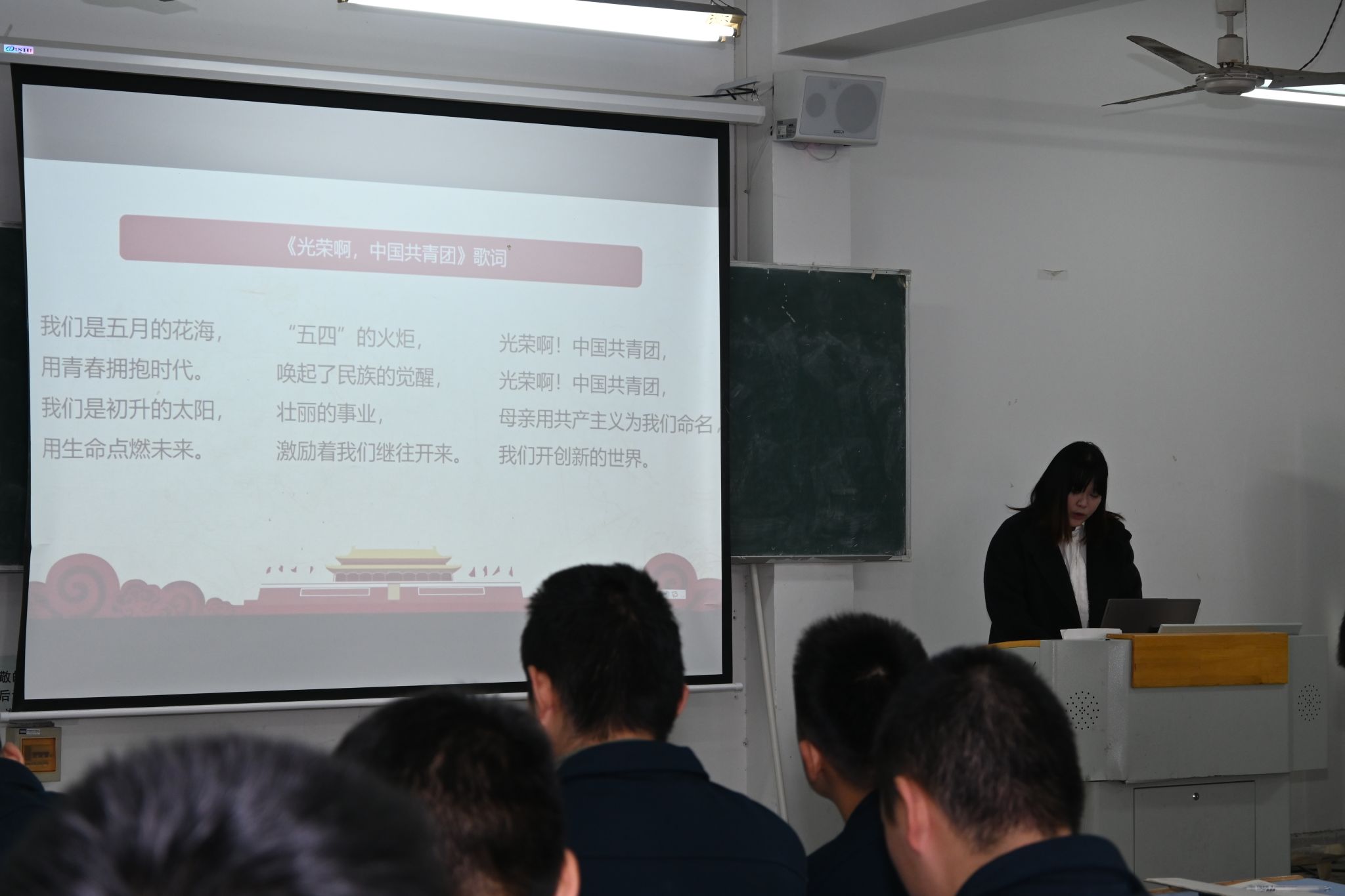 授课伊始,李思静老师围绕《共青团团歌》的创作背景、歌词内涵展开解读,结合革命历史场景帮助学员理解歌曲中蕴含的青春担当与奋斗精神并通过逐句教唱、节奏把控等方式,指导学员精准把握歌曲旋律与情感表达。随后,李思静老师聚焦《国际歌》的时代价值,阐释其对无产阶级革命精神的传承意义,组织学员进行合唱练习,强化集体共鸣,鼓励学员在传唱中坚定理想信念。授课结束后,学员们纷纷表示将把歌曲中蕴含的革命精神转化为学习训练的动力,以更昂扬的姿态投身国防后备人才建设。