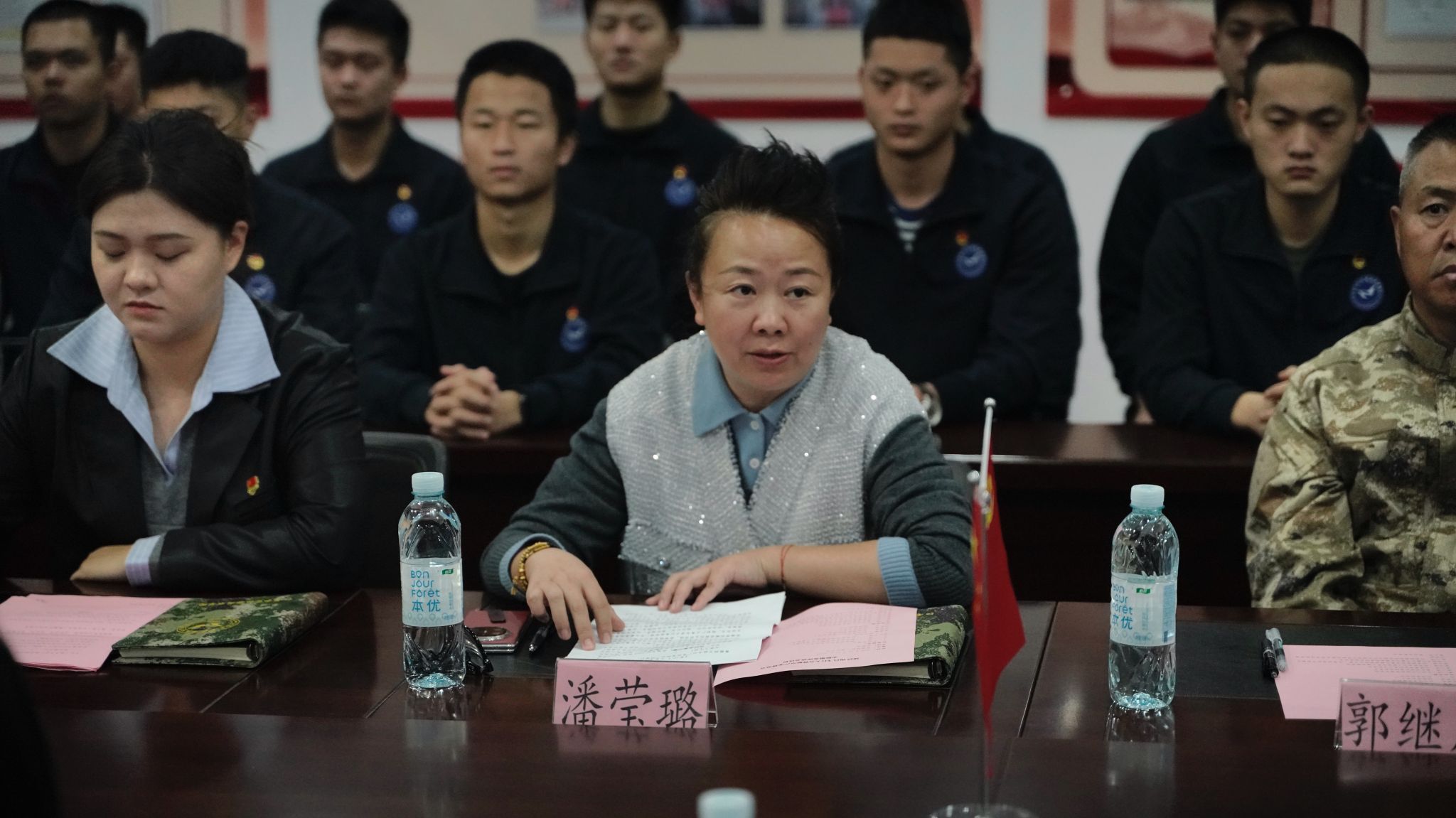 会议伊始,主持人介绍出席领导与老师,明确议题。带队老师代表郑志良分享了飞行大会志愿服务的组织筹备、岗位分配及保障工作经验,强调志愿者队伍的专业与担当。志愿者学生代表丁子轩结合自身经历,讲述了在引导咨询、秩序维护等岗位上的成长感悟,展现青春风采。潘书记肯定了志愿者的表现,鼓励学子以志愿服务为契机,锤炼技能、厚植情怀。王震部长与康凡子墨书记为优秀志愿者代表颁发荣誉证书。万琪书记为学院授牌,强调要持续深化校地合作,打造专业志愿服务队伍,为航空产业发展注入青春力量。