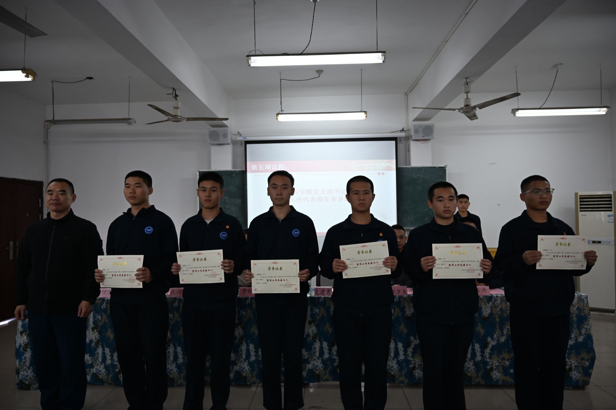 大会伊始,全体人员起立奏唱国歌,以庄重的旋律拉开大会的序幕。随后,党支部书记毛建勇宣布宣传部正式成立并致开幕词,他对宣传部的成立表示热烈祝贺,同时结合学院发展实际,对宣传工作的开展提出了明确要求与殷切期望。会上,宣传部成员焦向东作年度工作总结汇报,从工作成果、存在问题及改进方向等方面进行全面梳理。分团委书记李韬宣读《关于2025 - 2026学年第一学期宣传工作先进个人的表彰决定》,党支部书记毛建勇为先进代表颁发荣誉证书,以此激励全体宣传部成员争先创优。办公室邹罗生宣读《关于任命江西航空职业技术学院定向培养学院宣传部2024级负责人的决定》,明确宣传部的组织架构与人员分工。宣传部成员杨瑞棋代表全体成员作表态发言,展现宣传部全体成员做好宣传工作的决心。宣传部2023级负责人张涛宣读工作倡议书,号召全体成员凝心聚力、创新实干。最后,党支部书记毛建勇作宣传工作指导讲话,他强调宣传工作是学院发展的重要窗口,要求宣传部成员坚守初心、锤炼本领,打造有温度、有深度、有力度的宣传作品。大会在激昂的团歌声中落下帷幕。会议结束后,院领导们与宣传部全体成员合影留念。