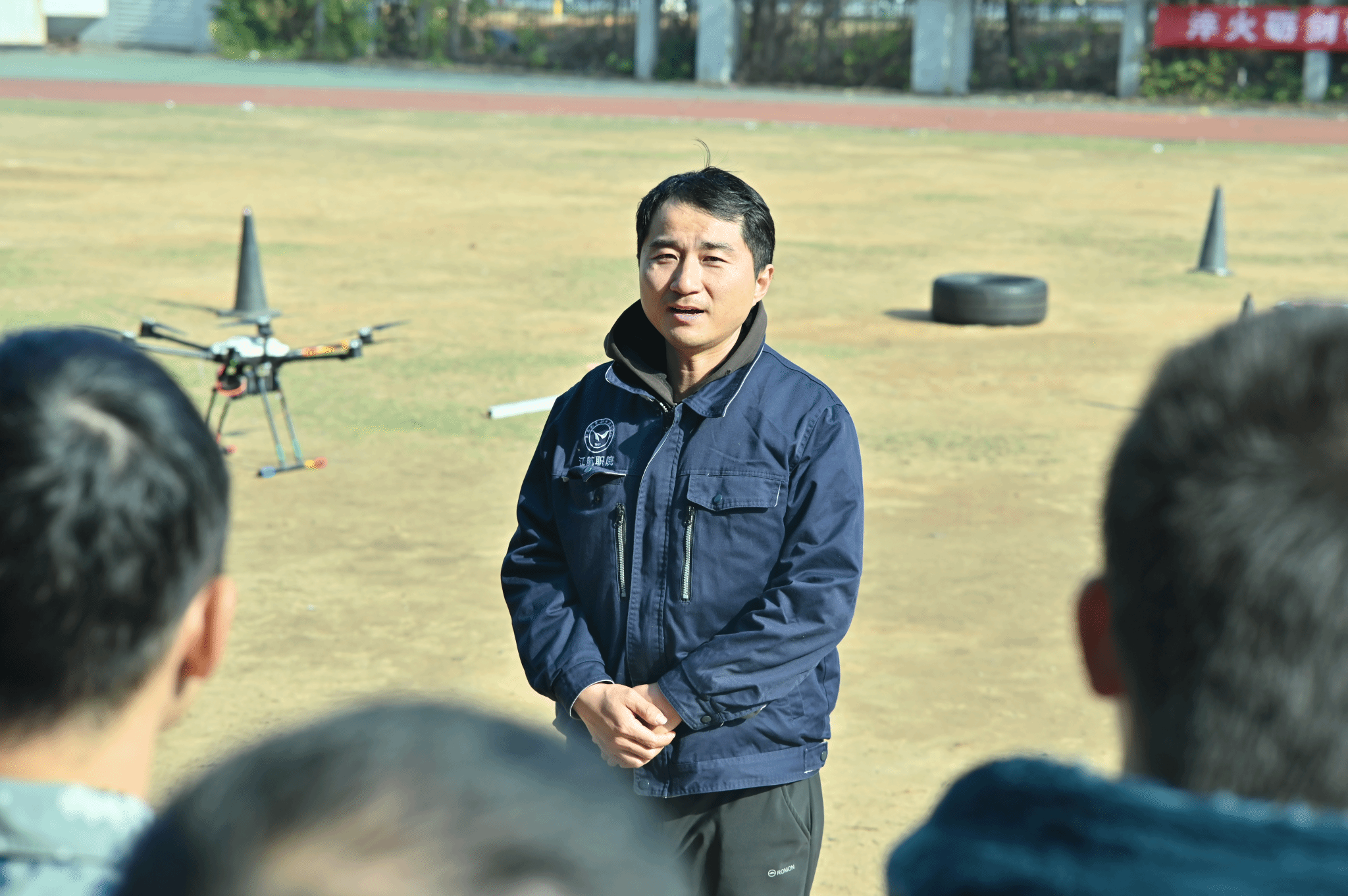 比赛伊始,裁判组委会向全体参赛学员宣读竞赛规则与安全注意事项,明确三人制小组参赛模式、器材标准及考核科目。随后,各参赛队伍依次登场,飞手与地勤人员通力协作、步调一致,展现出极强的团队凝聚力。比赛过程中,裁判组严格按照评分细则,从多操作维度进行量化打分,并实时记录竞赛情况。最后,裁判长张涛对本次竞赛进行全面总结,系统回顾了竞赛组织流程与各队伍表现,肯定了学员们在实操中展现的专业素养与协作意识,也针对性指出了部分队伍在航线规划、应急处置等环节的不足。指导老师漆罡结合无人机应用技术教学重点,对竞赛所反映的教学成效给予充分认可,强调此次竞赛是“理论落地实操、技能查漏补缺”的重要载体,鼓励学员们以赛促学、以赛促练,把竞赛中发现的问题转化为日常学习的重点,持续夯实专业基础、提升实战能力。