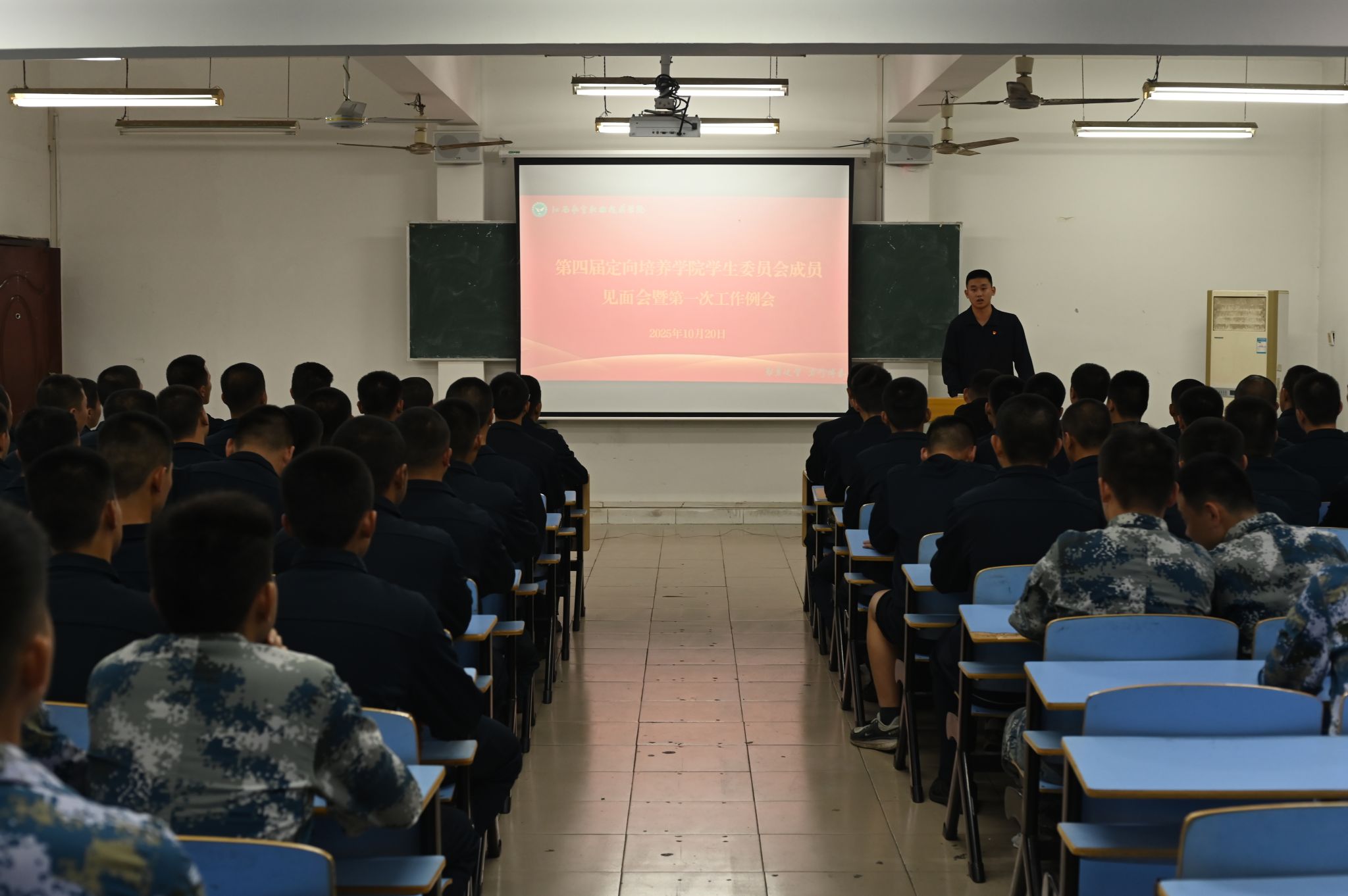 为明确新学期工作方向,部署后续任务。2025年10月20日,定向培养学院学生会于昌南校区召开第四届学生委员会新成员见面会暨第一次工作例会。本次例会由学生会主席张涛主持,大二、大三负责人以及69名新成员共同参加。
