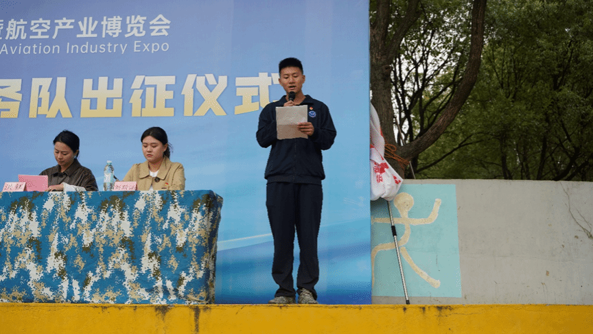 2025年10月21日15:00,2025南昌飞行大会“小白鹤”志愿服务队出征仪式在江西航空职业技术学院昌南校区运动场举行。仪式由该校党委委员洪钰主持,共青团南昌市委书记刘众星,南昌高新区团工委书记任子安、副书记康凡子墨等校外领导,以及学院党委书记潘莹璐、定向培养学院院长郭继成、团委负责人刘斯涵等校内领导出席。全体人员首先奏唱国歌,在庄严的氛围中拉开仪式序幕。