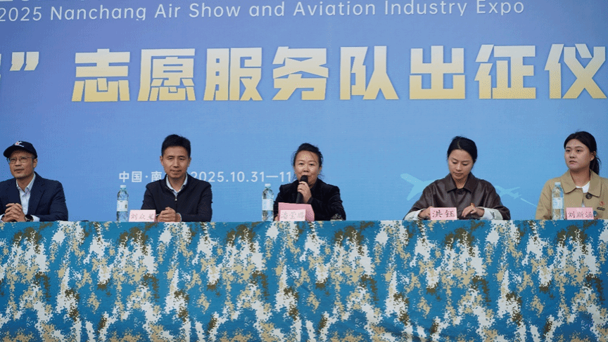 在《中国青年志愿者之歌》的激昂旋律中,潘莹璐书记发表讲话,对志愿服务队寄予殷切期望,并宣布“小白鹤”志愿服务队正式出征。仪式最后,全体人员集体合影留念,定格这一难忘时刻。此次出征仪式不仅展现了志愿者们的青春风采,更标志着他们正式踏上为2025南昌飞行大会奉献力量的征程,相信他们将以优质高效的服务为大会增光添彩。(图|文 余奇|崔健博)