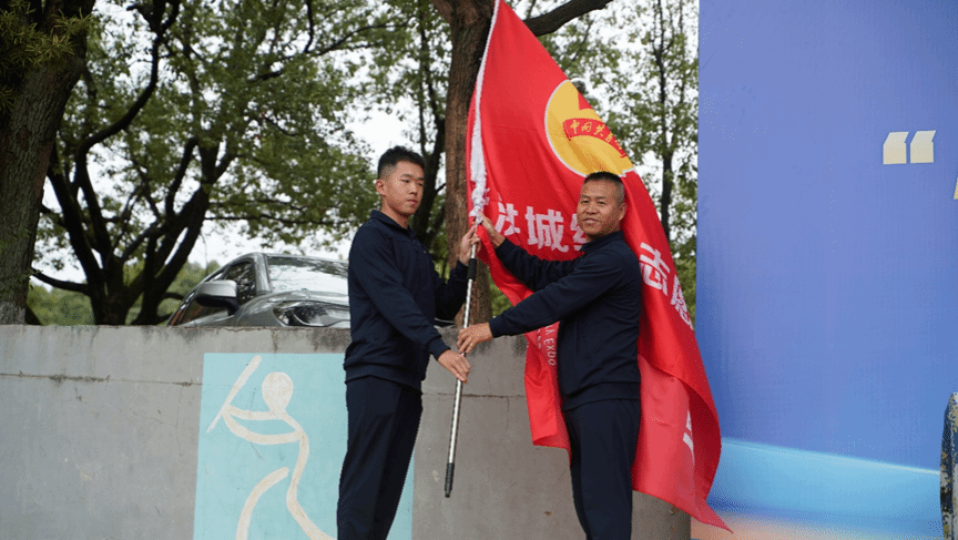 仪式上,团工委书记任子安介绍了“小白鹤”志愿服务队的工作背景、服务内容和前期筹备情况。志愿者代表贠相维发言,表达了志愿者们以饱满热情和专业素养服务大会的决心。随后,南昌市委书记刘众星与定向培养学院院长郭继成共同为“洪城红”志愿服务队和“小白鹤”志愿服务队授旗,旗手胡浩、冷少珂精神抖擞地接旗。志愿者成翰林带领全体志愿者庄严宣誓,誓言铿锵有力,展现了志愿者们的担当与使命感。