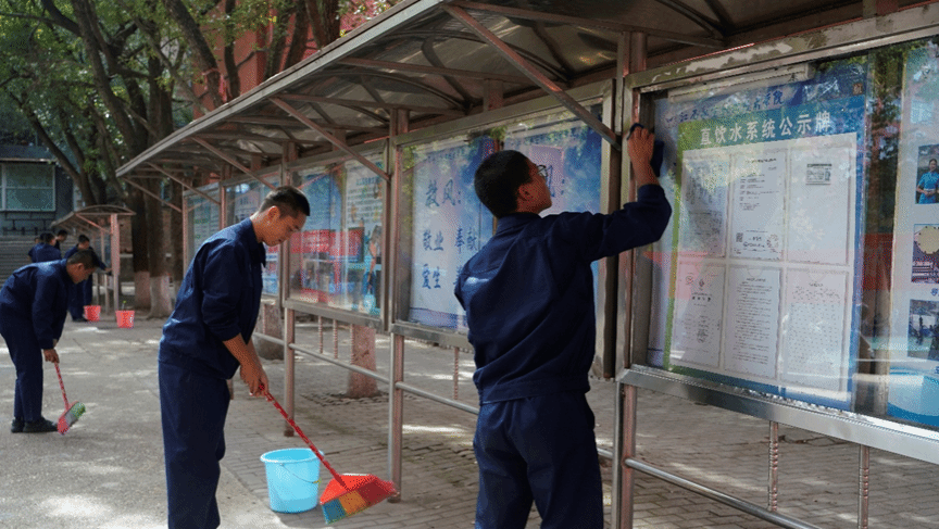 活动现场,学员们迅速分组、明确分工,手持清扫工具对校园主干道、公共活动区域及角落杂物进行全面清理。他们不畏污渍,不放过卫生死角,默契配合、高效协作,从清扫地面垃圾到细致擦拭公共设施,每一个动作都展现出严谨作风与集体意识,汗水浸湿衣背却始终保持高涨热情诠释着“奉献,有爱,互助,进步”的志愿精神,让校园环境在协作中焕新颜,体现了定向培养军士的优良品行。