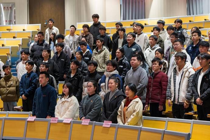 最后,全体人员起立奏唱《中国共产主义青年团团歌》,大会在激昂奋进的歌声中圆满落下帷幕。会后,与会嘉宾与新任学生干部合影留念,记录下这一具有纪念意义的时刻。参会人员在工作人员引导下有序退场,会场物资也迅速整理完毕。