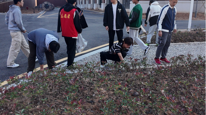 初冬清晨,阳光和煦。上午9时整,120名志愿者在公教楼1号110教室准时集合,精神抖擞,整装待发。志愿活动负责人首先进行了简短而高效的行前动员,明确了活动的意义、任务分工及安全注意事项。随后,志愿者们被划分为4个小组,在各组组长的带领下,奔赴教学楼区、生活区、运动区等4个主要责任区域。