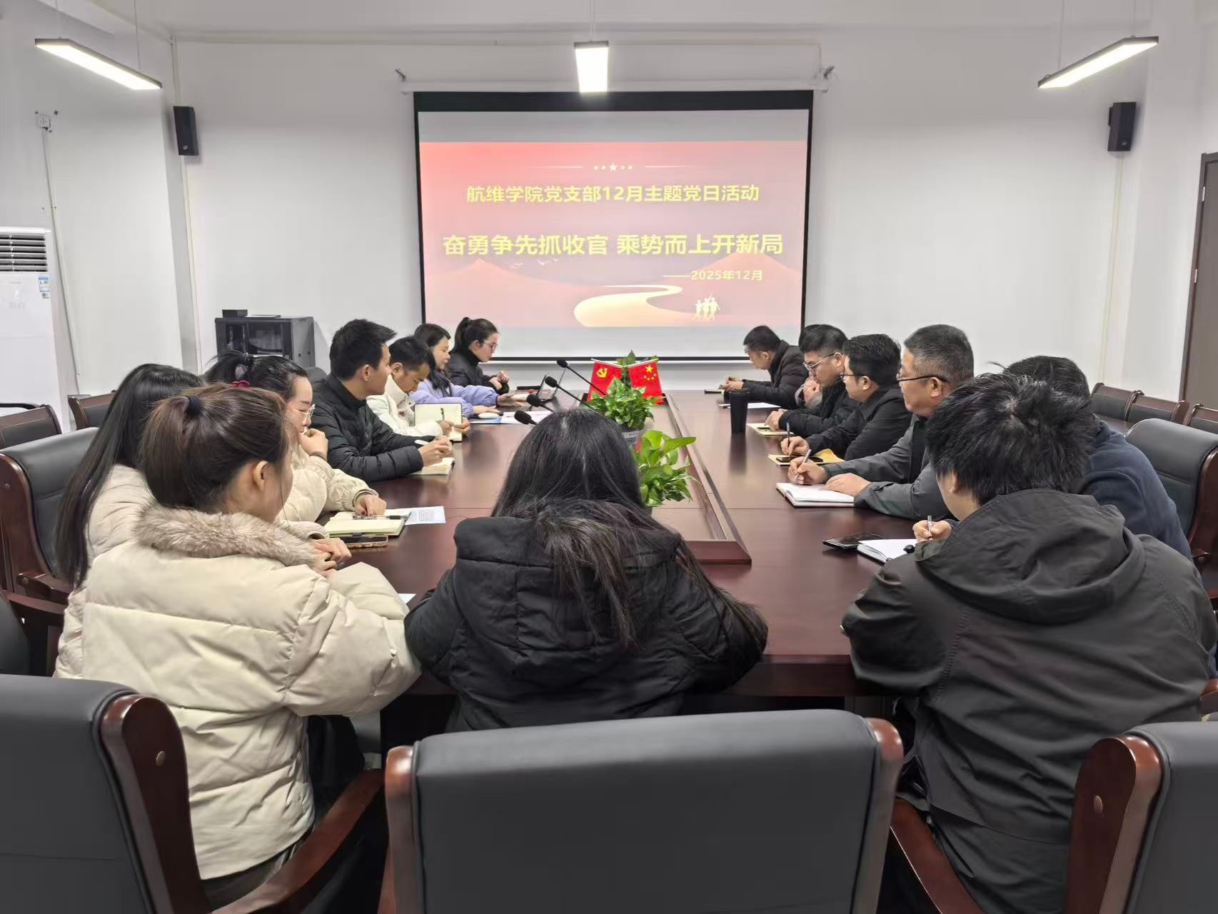 为深入学习贯彻党的二十届四中全会精神,教育引导广大党员干部切实把思想和行动统一到党中央决策部署,聚焦目标抓落实,聚力攻坚求实效,确保完成全年各项目标任务。2025年12月26日下午,航维学院党支部在学院楼504会议室开展“奋勇争先抓收官 乘势而上开新局”12月主题党日活动。会议由支部副书记王慧萍同志主持,支部全体党员参会。学校党委委员、组织部部长曾健、马克思主义学院党支部书记任国平、基础课部教师党支部书记熊欢列席会议。