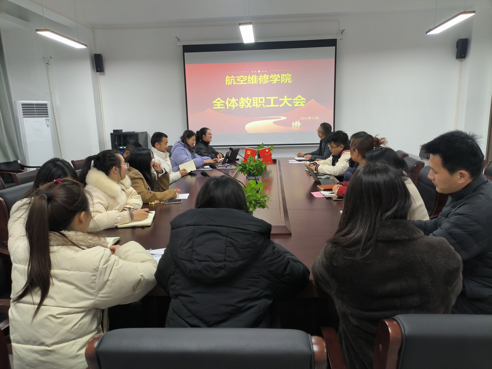 2025年12月26日15时15分,航空维修学院在航维楼504会议室组织召开了2025-2026-1学期第四次全院教职工大会暨学生宿舍搬迁工作专题部署会。会议由学院院长蒋天合主持,学院全体教职工参加了本次会议。