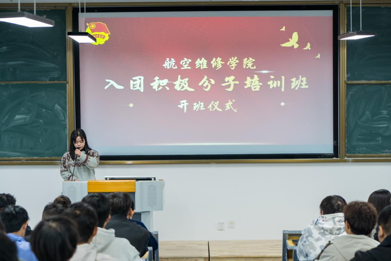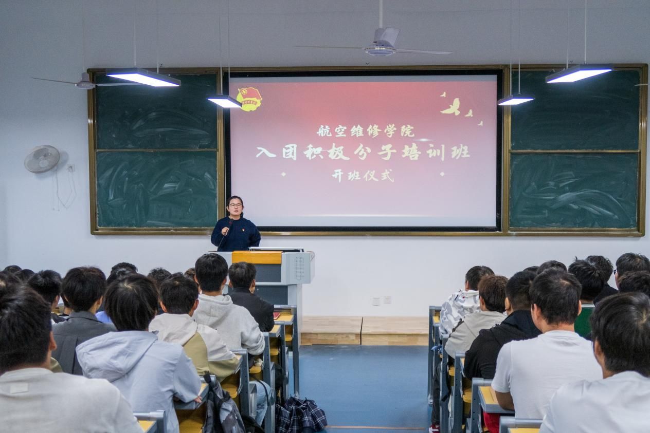 航空维修学院党支部副书记王慧萍为开班仪式作动员讲话。她站在党的事业薪火相传、后继有人的战略高度,深刻阐述了共青团作为党的忠实助手和可靠后备军所承载的光荣传统与时代使命。她强调,新时代青年生逢其时、重任在肩,必须坚定理想信念,校准人生方向;锤炼高尚品格,筑牢价值根基;提升综合能力,锻造过硬本领。她寄语全体学员以此次培训为新的成长台阶,努力实现学思用贯通、知信行统一,争做有理想、敢担当、能吃苦、肯奋斗的新时代好青年。