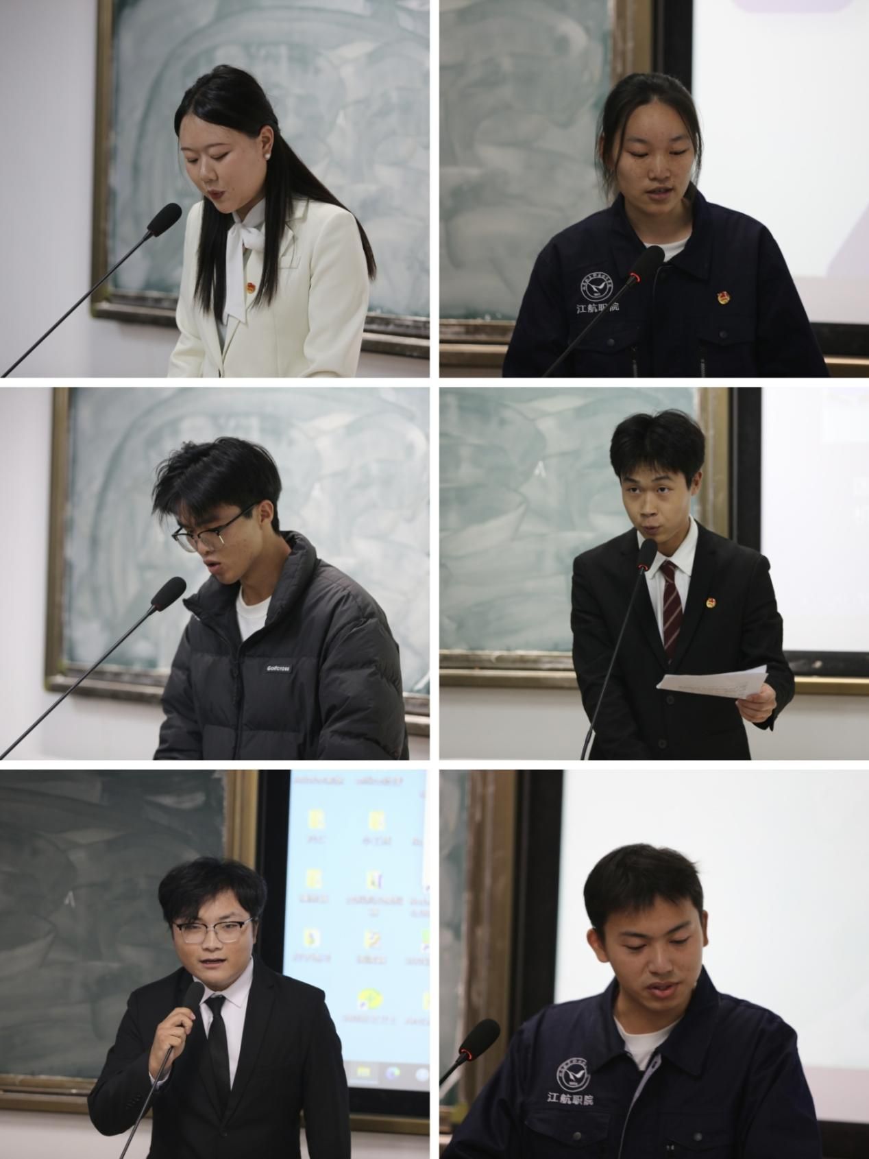 航空维修学院院长蒋天合、马克思主义学院教研室主任蔡金梅、航空维修学院党支部专职组织员黄自珍、分团委书记朱翠林以及辅导员代表曹昱琪组成评委。全体参赛选手以及师生代表共计160余人参与了此次赛事。