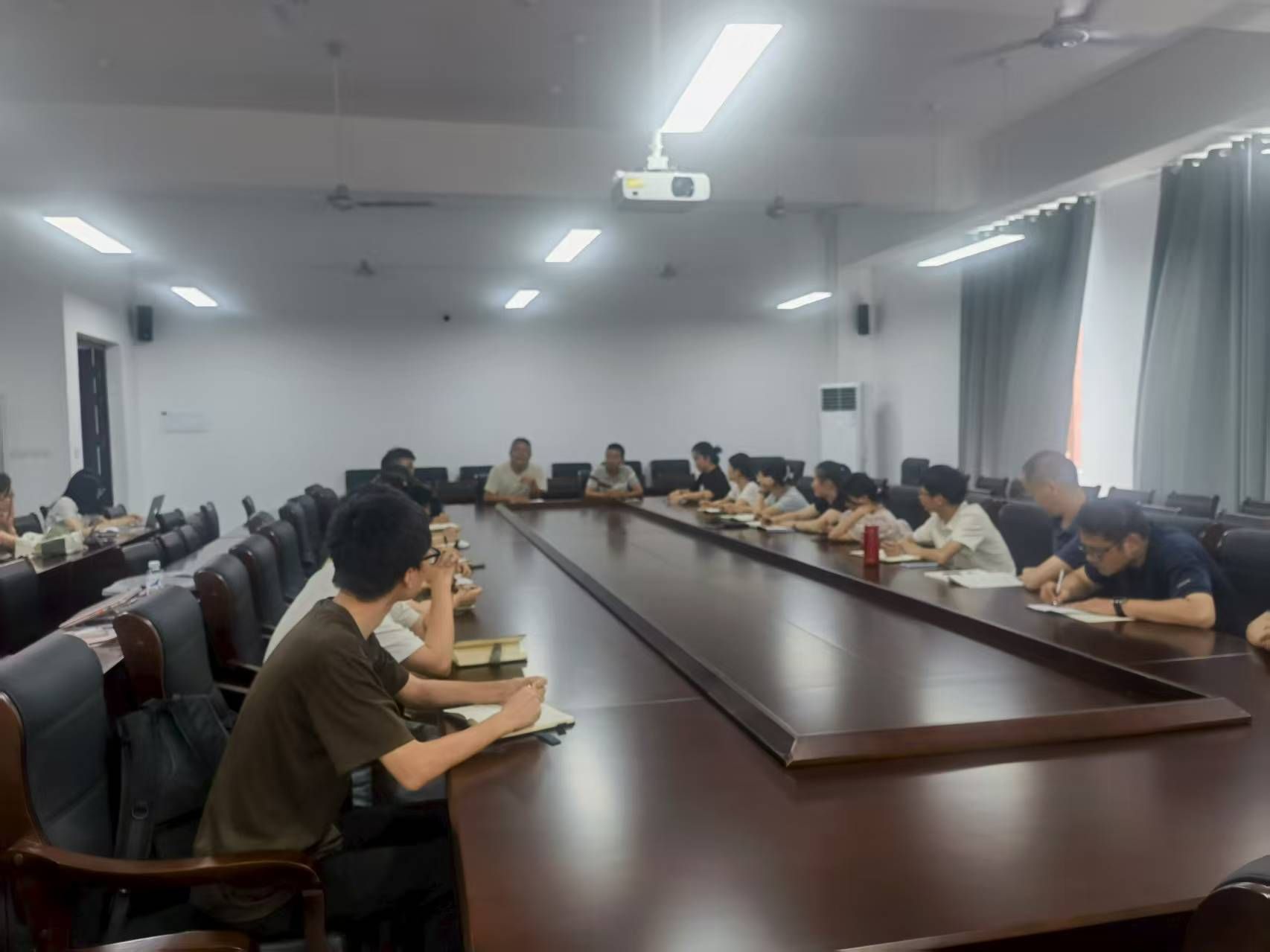 会议首先由蒋天合院长发表讲话。他围绕搬迁新校区后的新环境、新起点,对全体教职工提出了新的希望与工作要求。蒋院长明确了日常工作的核心原则,强调要加强信息沟通、促进信息对称,推动全员协同,以高效完成学院各项任务。他特别指出,每一项工作都必须做到“有布置、有标准、有方法、有落实”,形成完整闭环。同时,他倡导在学院内部树立“自上而下的服务意识”和“自下而上的责任意识”,共同营造积极向上、担当有为的工作氛围。