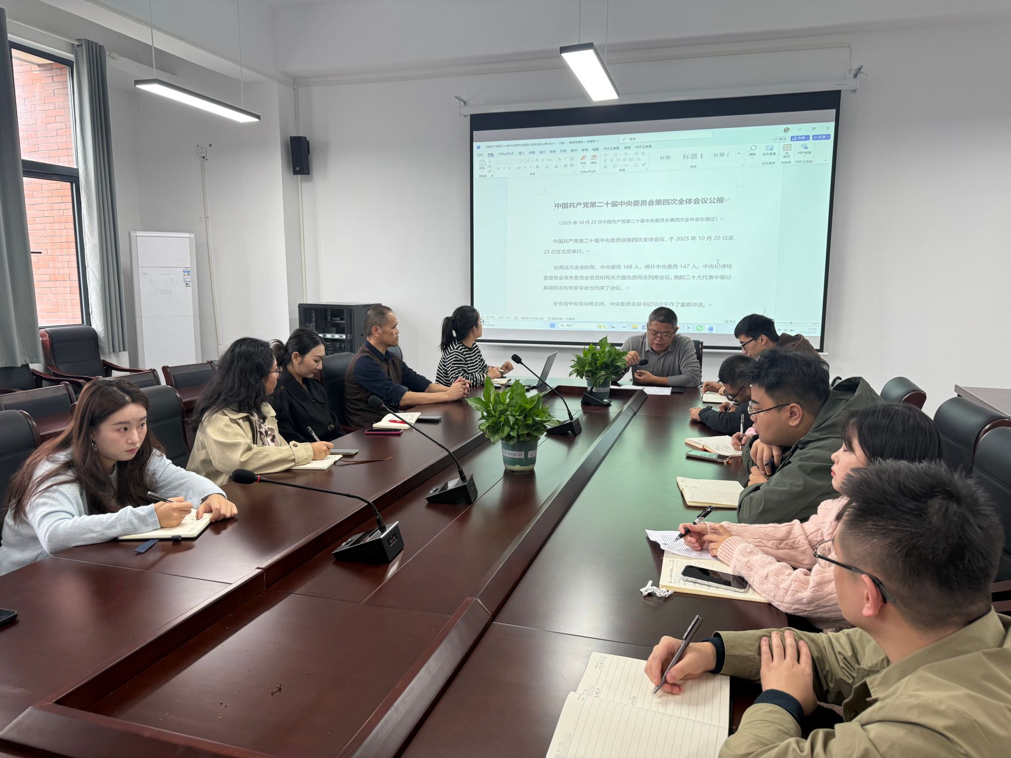 在随后进行的政治理论学习环节,全体教职工集中学习了党的二十届四中全会精神。通过学习,大家深入领会了中央的最新决策部署,进一步统一了思想、提高了政治站位,为将理论学习成果转化为推动学院高质量发展的实际行动奠定了坚实的思想基础。