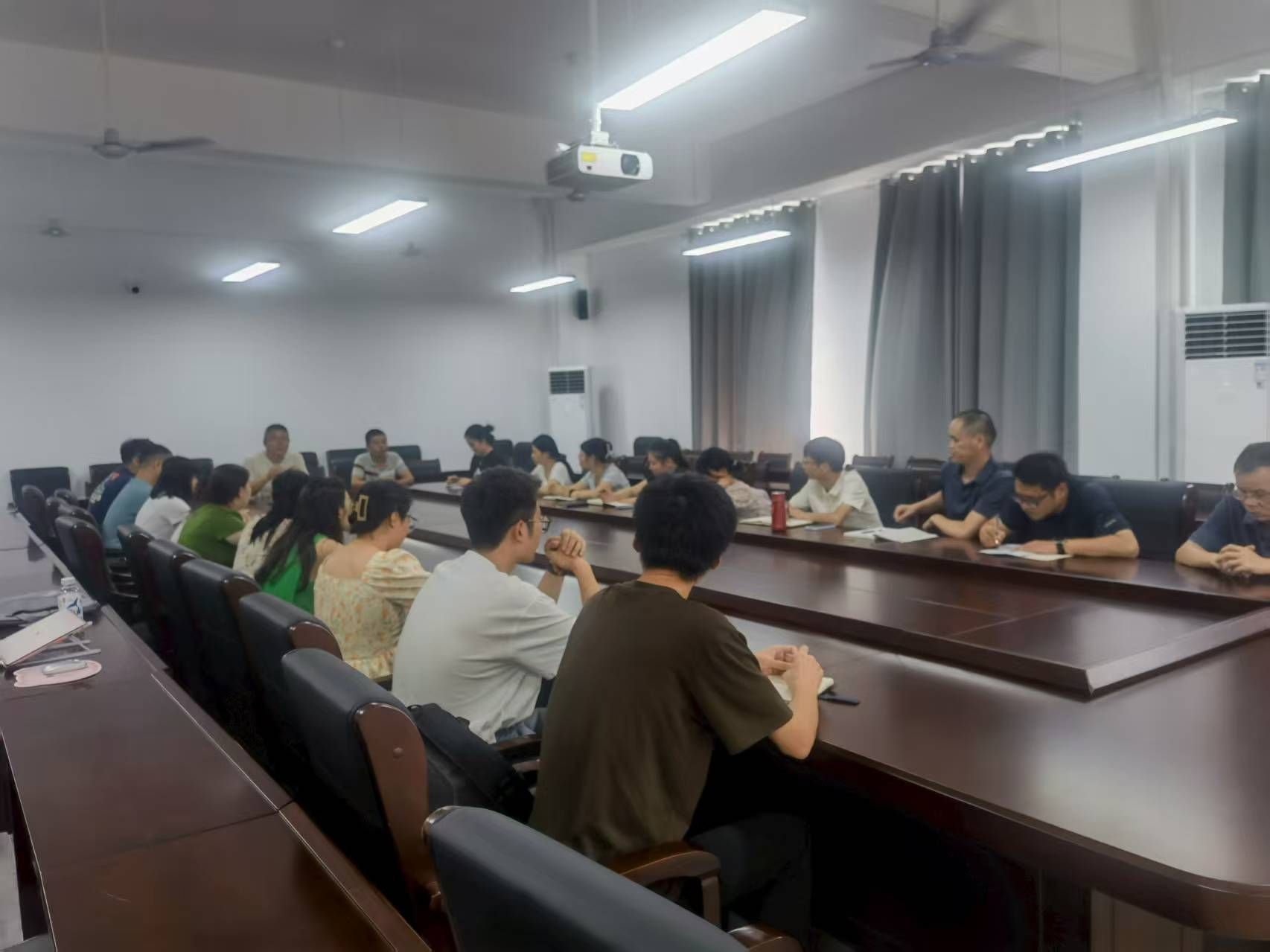 会议首先由蒋天合院长发表讲话。他围绕搬迁新校区后的新环境、新起点,对全体教职工提出了新的希望与工作要求。蒋院长明确了日常工作的核心原则,强调要加强信息沟通、促进信息对称,推动全员协同,以高效完成学院各项任务。他特别指出,每一项工作都必须做到“有布置、有标准、有方法、有落实”,形成完整闭环。同时,他倡导在学院内部树立“自上而下的服务意识”和“自下而上的责任意识”,共同营造积极向上、担当有为的工作氛围。