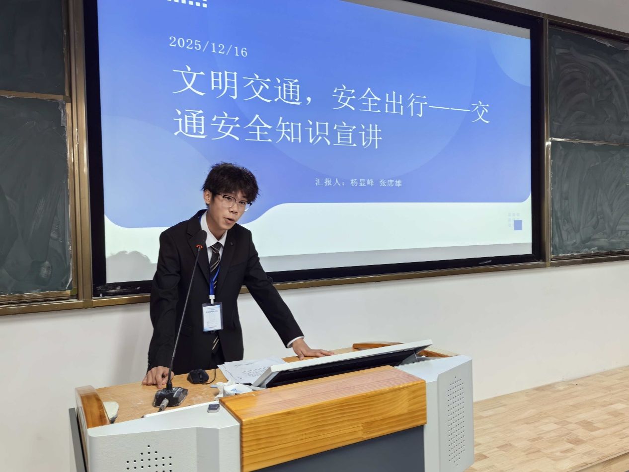 为切实加强学生交通安全教育,提升学生文明出行意识和风险防范能力,筑牢校园安全防线,2025年12月30日17时,航空维修学院自律委员会在抚州校区一号公教楼110教室组织举办了“交通文明,安全同行”主题教育宣讲会。