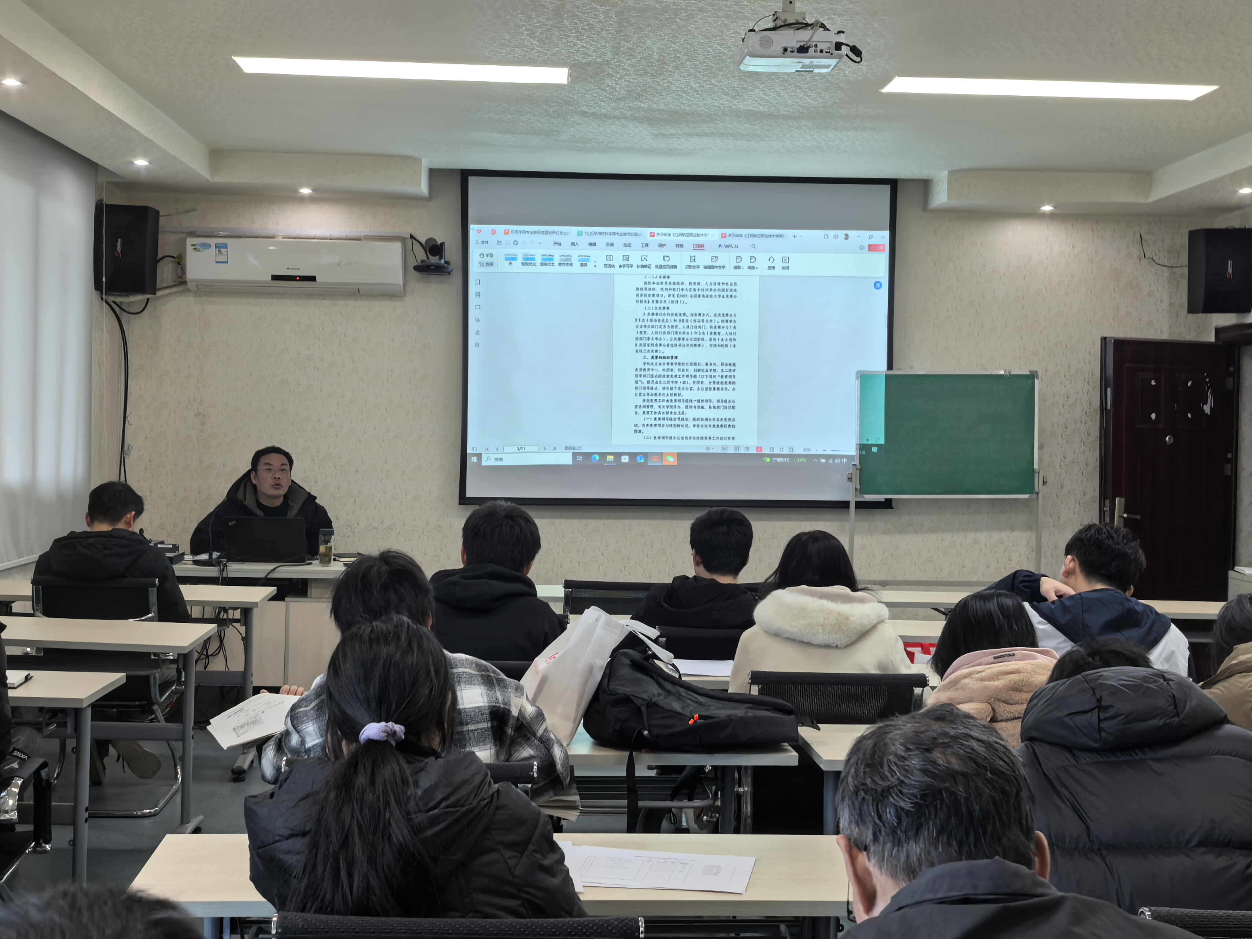 随后,朱院长带领全体老师学习了《江西航空职业技术学院职业技能竞赛管理办法》《江西航空职业技术学院科研工作评审和奖励条例》《江西航空职业技术学院专利管理办法》等文件,希望2025年以教研室为单位鼓励教师指导学生参加比赛,积极参加科研。