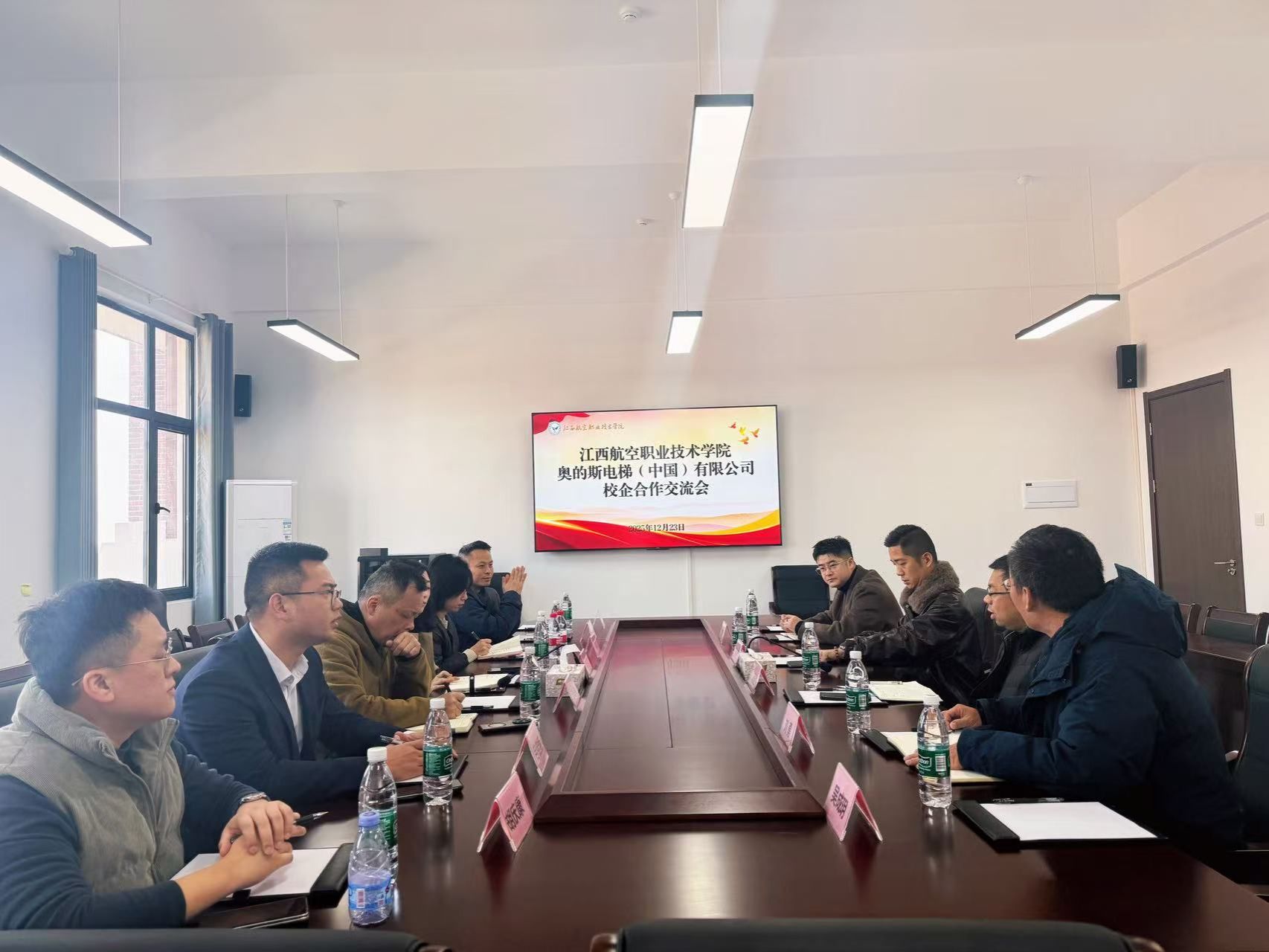 为进一步深化产教融合,探索校企协同育人新路径,2025年12月23日上午,我校与全球知名电梯制造商奥的斯电梯(中国)有限公司在航空智能装备学院楼506会议室举行了校企合作交流会。会议由航空智能装备学院院长刘勇主持,校企双方代表齐聚一堂,共商合作,共谋发展。