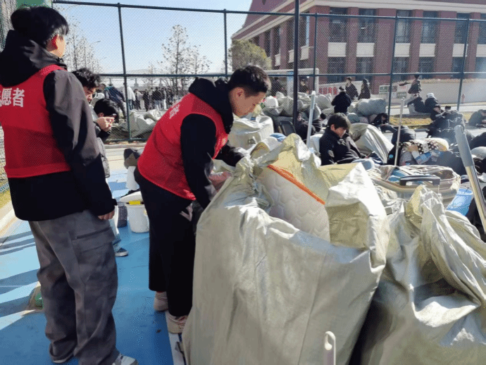 为保障集中搬迁顺畅推进,学院提前开展全方位筹备工作。通过主题班会等渠道,向学生精准推送搬迁流程、时间节点、行李打包规范及安全注意事项,同步收集学生特殊需求,为行动不便学生预留专属帮扶名额。同时,学院对A、C两区搬迁路线进行实地勘察,规划以辅导员为单位的班级专属等待区,避开校园人流高峰,在新旧宿舍楼下设置临时登记点、行李堆放区,配备饮用水,全方位筑牢服务保障网。1月6日至9日,“行李先行”专项活动率先开展,数十名志愿者提前完成1600余名学生行李的清点、转运与堆放工作,为1月10日集中搬迁扫清障碍。