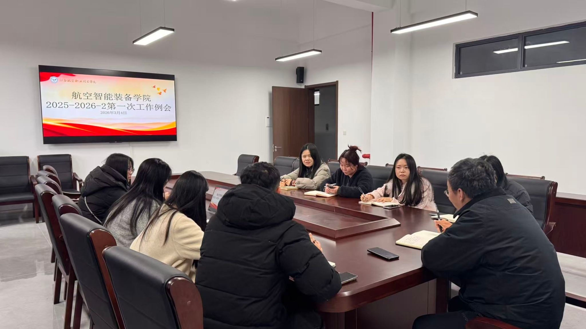 3月4日下午15时30分,航空智能装备学院在学院楼506会议室召开新学期第一次行政工作例会。会议由院长刘勇主持,副院长朱庆贺、专职副书记周平及全体行政人员参加会议。会议围绕新学期教学保障、运行管理、特色项目建设及学生工作等重点任务进行全面部署。