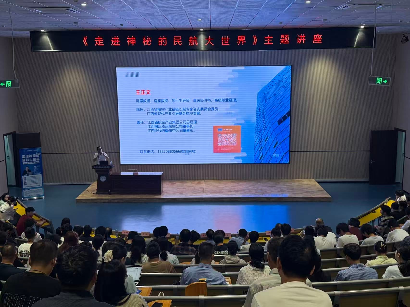 活动伊始,校长助理李燕代表学校对王正文教授的到来表示热烈欢迎,并着重介绍了他的资深行业经历。王教授身为高级经济师(教授)、硕士生导师,不仅担任江西省航空产业链链长制专家咨询委员会委员等要职,更曾掌舵江西省航空产业集团及其旗下多家航空公司,亲身领导并实施了江西省内多个重大航空项目,是兼显卓越理论素养与丰富实践经验的行业领军人物。