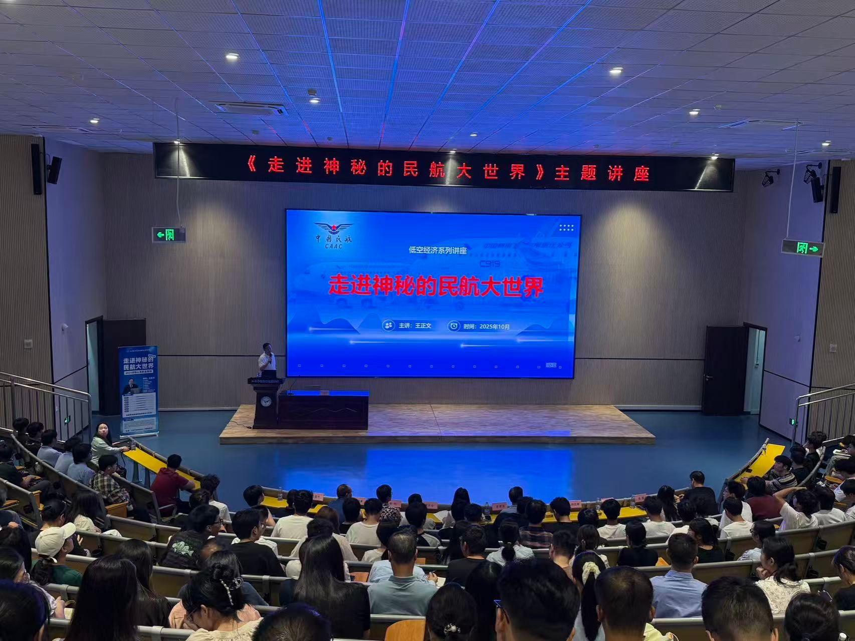 “低空经济为何突然成为热点?”“考取飞机驾照是怎样一个过程?”“飞行员的年薪真的像传说中那么高吗?”“空姐的选拔标准究竟有多严格?”王正文教授并未直接给出答案,而是用一系列贴近现实、充满趣味的问题作为开场,瞬间抓住了所有听众的注意力,成功引导大家带着思考进入民航的广阔世界。