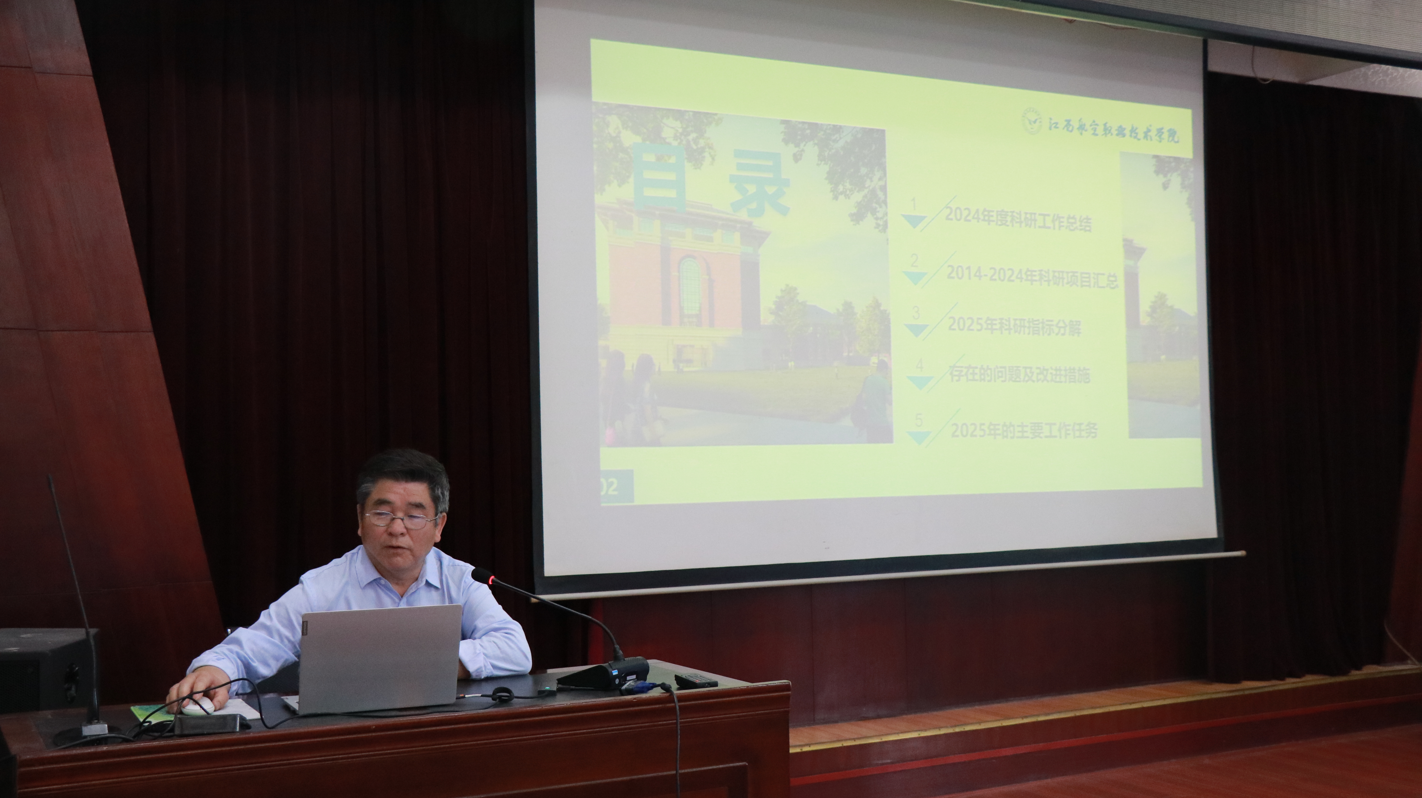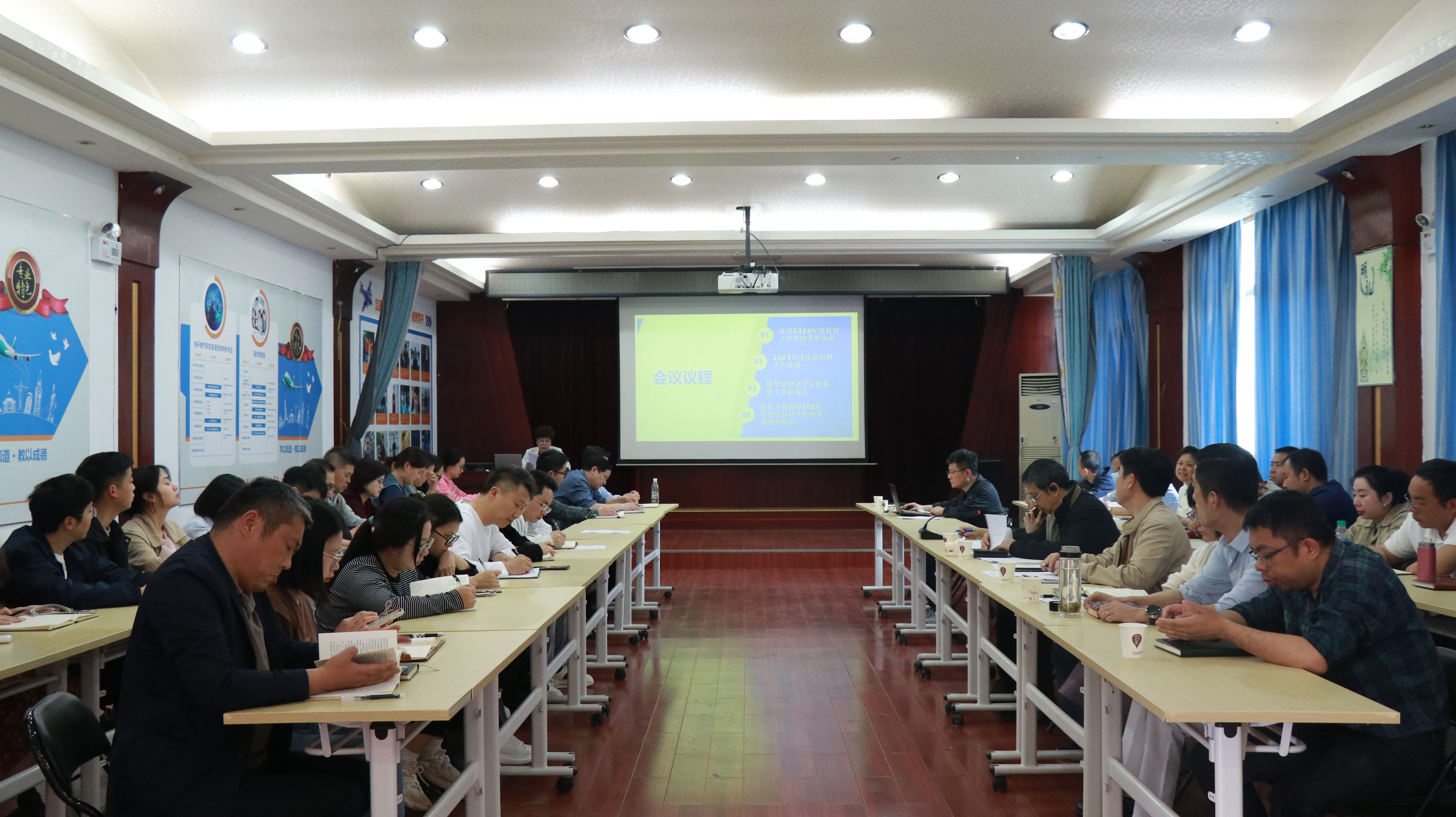 科技处处长谢文秀对2024年度江航科研工作进行了总结,对我校历年科研项目进行了梳理和汇总,并确定2025年的科研工作目标。强调要从2025年开始,将科研项目申报、专利申请、发表论文等体现学校科研实力和水平的指标下发给学校各二级学院和专业群带头人,充分发挥专业群带头人的科研引领作用,充分调动各二级学院(或部门)教师和员工的科研积极性,不断提高江航职院的科研能力,为江航职院的发展做出贡献,并将2025年度科研指标的完成情况作为各二级学院的绩效考核内容。
