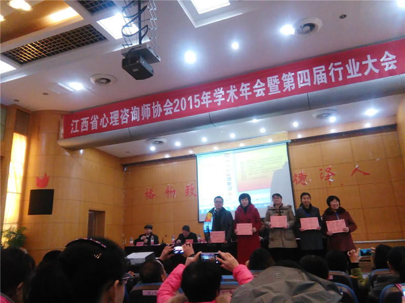 2015年12月12日,江西省心理咨询师协会2015年年会暨第四届行业大会在南昌大学青山湖校区图书馆学术报告厅召开。我院心理中心周健、吴琦、肖红三位老师参加了本次年会。