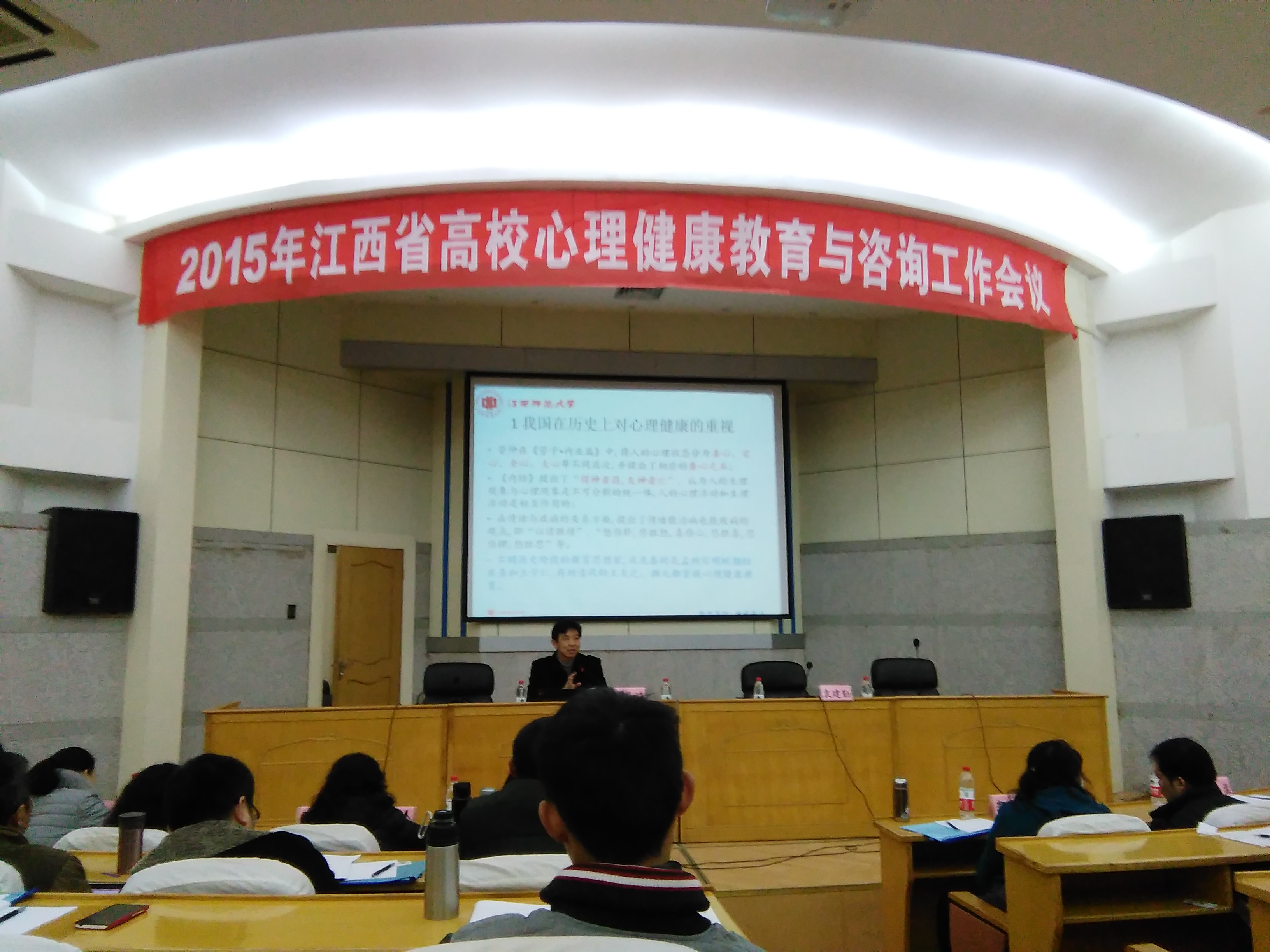 江西省高校心理健康教育专业委员会会长、江西中医药大学党委书记刘红宁介绍2015年工作及以后工作思路。2015年心研会工作:1.配合省教育厅开展525高校心理工作。2.组织参加第12届全国大学生教育咨询学术交流会。3.举行了心理咨询专项督导会。4.完成了大学生心理课程教材的修订。5.推动省高校新生普查工作。6.举办了省高校心理危机干预及生命教育工作。7.协助教育厅开展普通本科院校示范中心评估工作。今后工作计划:1.推进高校心理教育常规工作做严、做实。2.推动全省高校心理活动的创新。3.推动全省本科高校咨询示范中心工作。4.推进全省心理健康老师的督导工作。