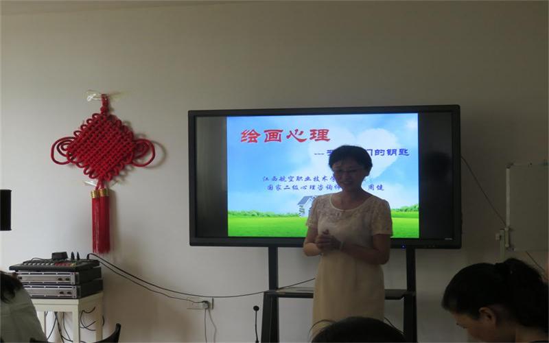 5月27日下午,我院心理老师周健应南昌市未成年心理健康辅导中心之邀,为南昌市中小学的部分心理骨干教师做《绘画心理》主题分享,来自南昌教研室、南昌二中、二十二中、二十八中、育新等学校的心理老师们参加了这次分享讲座,绘画是学校老师了解学生内心世界最简捷的方法,也是学生最愿意配合的方法,通过一幅画了解学生内心,情绪和性格特征,以画为突破口和学生建立关系,更好地沟通,这让老师们很好奇。以下是中心网站的报道“ 2015年5月27日下午,来自江西航空职业技术学院的周健老师和我们分享了《绘画心理》课.人人都画过画,特别是儿童时期,绘画成为我们表达内心的一种形式,或许你的绘画是无心的,可是通过周老师生动的解读,一张一张的画纸可以分析出画画者的情感与认知,也从一个侧面了解画画者的人格特质。从房树人到五维画测验,从罗夏墨迹到主题统觉,周老师用其专业的知识和富有感染力的语言把一幅一幅的作品,从心理学的角度给我们进行了解读,最后大家还饶有兴致地亲自动手尝试画了一幅画,周老师也耐心细致的进行了分析和解读。