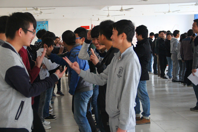 团体辅导分三个单元。第一单元是“你我有缘”。为构建和谐的团体氛围,首先建立团体契约,大家把条约记在纸上并大声读出来。然后每个人写上自己对活动的期待。接下来的热身活动是爱在指尖,现场分为两组四列,两两相对的人伸出手指表达彼此的态度,按照不同的数字做一些动作,引导大家思考人际交往中真诚的重要性。