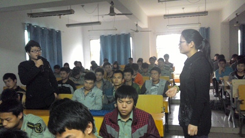 吴琦老师的讲座内容首先从悦耳优雅的歌曲导入,由帅气、大方的士官生贺玉坤清唱了一段《阳光总在风雨后》,现场气氛比较热烈,自然而然地切入到讲座的主题。