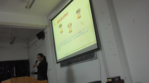 最后吴老师用了一段诗歌总结。让我们把挫折踩在脚下,相信阳光总在风雨后!伴着《真心英雄》的歌声,讲座在轻松愉快的氛围中结束。