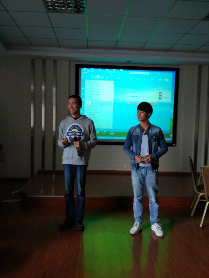 最后,我们来到了多功能教室,开始自我介绍,让我们各自熟悉了起来。之后我们看了江西现代的同学制作的工作幻灯片,了解到他们心协的工作和成果,确实不错,有很多我们值得借鉴和学习的地方,我们也得到了很多的启示。为了增进感情,相互熟悉,我们开始做几个小游戏,在游戏中双方同学都放下了拘谨,很好地融入在一起,欢声笑语不断,偷偷告诉读者最后是我们学校赢了哦。