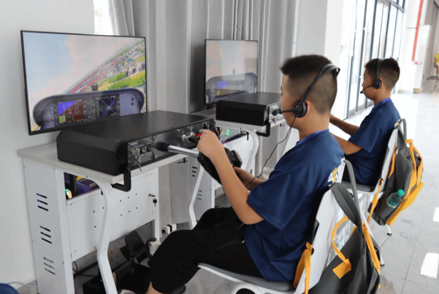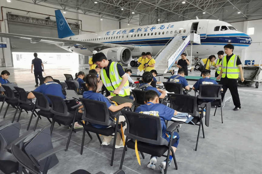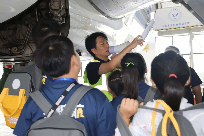抚州南城机场(江航南城实训基地),飞行总师杨耀总体协调指挥,各环节工作开展井然有序。机场管理实训中心、飞行驾驶技术训练中心、航空机务维修工程训练中心为小学员们充分展示系统完整的飞行服务指挥体系,近身了解飞行操控原理,贴近观摩各种飞机的构造和发动机的工作原理,亲身感受完美的空中游览。基地展示在小学员面前的空客A320飞机、翔龙XL-100适航飞机、塞斯纳172飞机、贝尔206直升机、塞斯纳172型双座模拟器、桌面级飞行训练器等实物飞行器和模拟器,以及航空发动机等,让孩子们目不暇接,兴奋不已,有效帮助孩子们初步了解飞行操作流程、大大提升他们对航空领域的认知。特别是亲身登上西锐 SR20 真机空中游览,让孩子们亲身感受到了飞行的魅力、飞行员的高超技术,更是领略到了南城机场的壮观和山水南城的美丽风景。