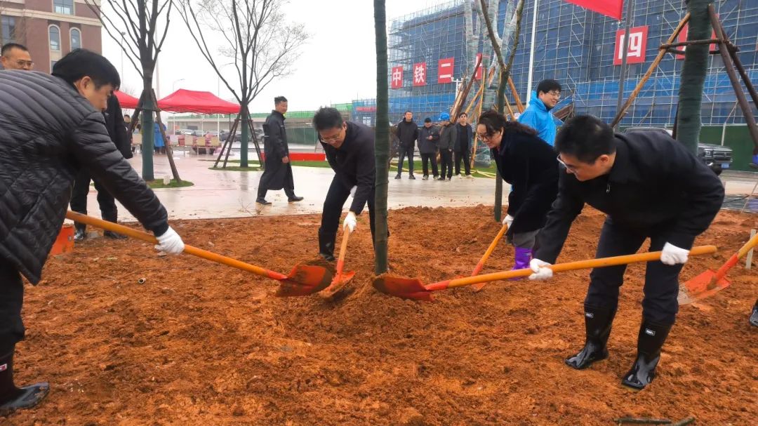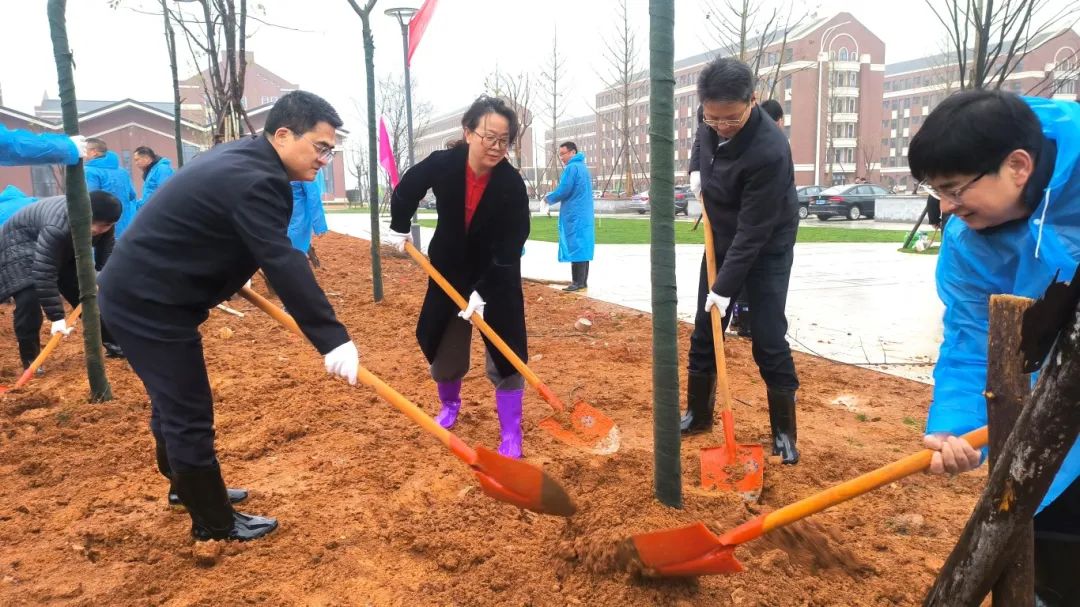 植树现场,大家干劲十足,按照规划好的种植区域,三两成组,分工明确,默契配合。放苗扶正、挥锹铲土、培土填坑、踏土夯苗、提水浇灌,成片栽下樱花树100株,红叶石楠60株,为校园更添灵动春色。植树期间,龚煌叮嘱相关部门要加强管护力度,确保栽一片、活一片、绿一片。