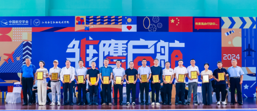 启动仪式现场,“雏鹰启航”计划的两位发起人——中国航空学会理事长林左鸣、海军原副司令员张永义将军,为合作伙伴和2024年活动支持单位颁发了奖牌。这一刻,荣誉与梦想交织在一起,为青少年的航空梦保驾护航。