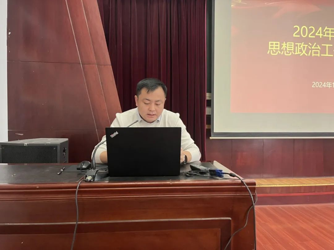会上马克思主义学院副院长胡泉雨汇报了学校思政课建设情况。