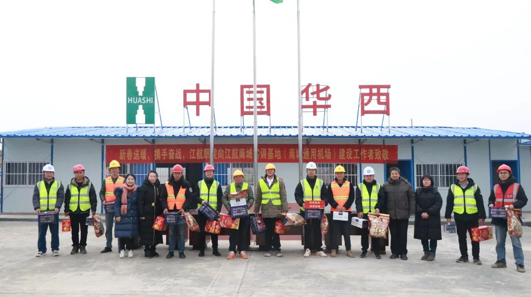 随后,慰问组一行来到江航南城实训基地(南城通用机场)项目建设现场,受到了建设者们的热烈欢迎。在分发慰问物品后,宋利康校长对辛勤工作的建设者们表示敬意,并希望大家继续保持昂扬的斗志,为我国航空事业的发展贡献力量。他强调,江航南城实训基地(南城通用机场)项目是学校发展的重要布局,是学校培养高素质航空技术人才的重要平台,希望建设者们以更高的标准、更严的要求,发扬优良传统,团结协作,确保项目按期完工。同时,他还叮嘱项目负责人要关心关爱建设者,切实解决他们在生活上的困难,让大家感受到学院大家庭的温暖。