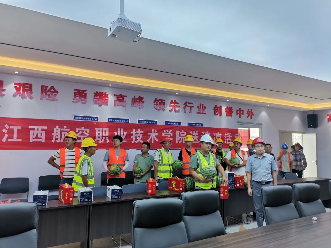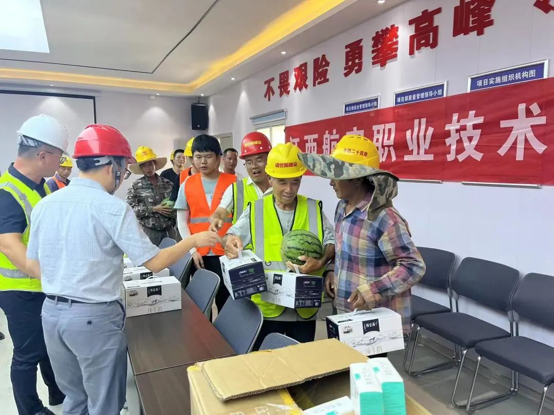 江航学院为新校区建设一线工人开展“夏日送清凉”慰问活动
