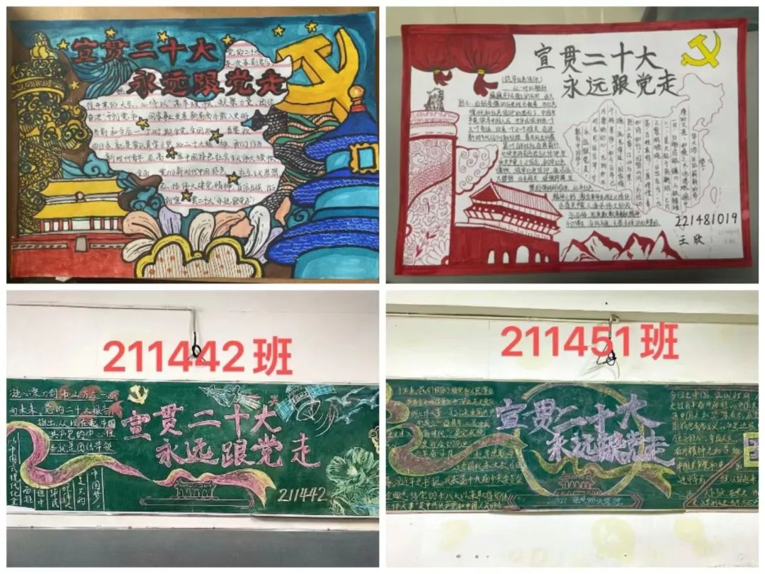 各级团组织认真学习党的二十大精神,通过团日活动、主题班会、主题演讲、手抄报、黑板报等活动,强化广大青年的政治品格,赓续红色血脉,夯实精神之本、熔铸精神之源。